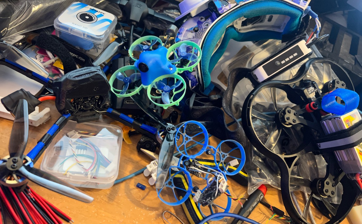 - Under 70mm frame size (diagonal from motor-to-motor center) with ducts/guards around each propellor